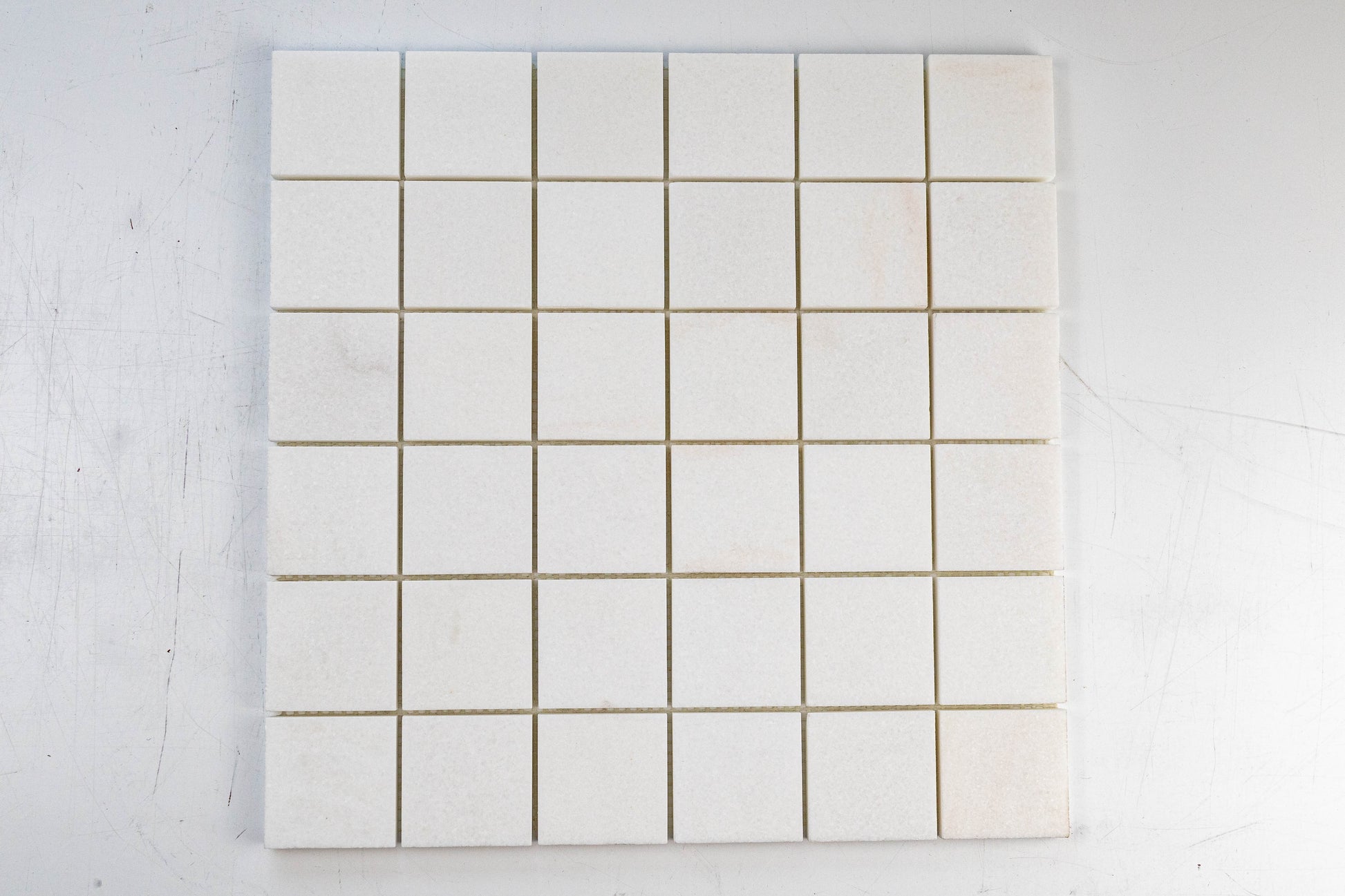 Our 2"x2" Thassos marble mosaic offers a crisp, refined take on a classic square format. Cut from premium Thassos marble, known for its bright white tone and subtle crystalline texture, the surface reads clean and luminous with minimal variation.