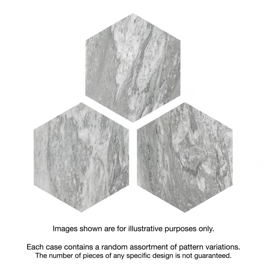 Emulating the timeless beauty of marble stone, our Bailey Hex 11” x 13” Porcelain Floor and Wall Tile combines cutting-edge antimicrobial technology with the versatility of durable, healthy, and easy to maintain porcelain tile. This matte hexagon tile features grey veining and striations set on a white base glaze, which utilizes antimicrobial compounds such as zinc oxide and silver oxide to inhibit the ability for bacteria, mold, and fungi to replicate. This technology results in a 99% reduction of harmful microbes compared to typical surfaces. Its impervious, frost-proof, and durable features make it an ideal choice for residential or commercial indoor and outdoor installations, including kitchens, bathrooms, backsplashes, showers, entryways, and patios. The Bailey Hexagon glaze is ideal for any space which requires additional levels of safety and hygiene, and like all porcelain tile, it is made from natural ingredients and free of all allergens, VOCS, formaldehyde and PVC.