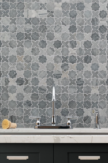 Add detail and interest to your space with Melik Blue Oak Mosaic. Featuring a medley of dove grey to charcoal grey hues in a distinctive geometric pattern, the neutral palette of this genuine marble tile works with nearly any color scheme. It’s an ideal choice for kitchen backsplash, fireplace façades, shower surrounds, bathroom vanity walls, and more. Not only stylish, but also durable and low maintenance, Melik Blue Oak Tile updates your space with the beauty of natural marble. Tiles are strategically arranged on mesh backed sheets for simplified installation and professional look.